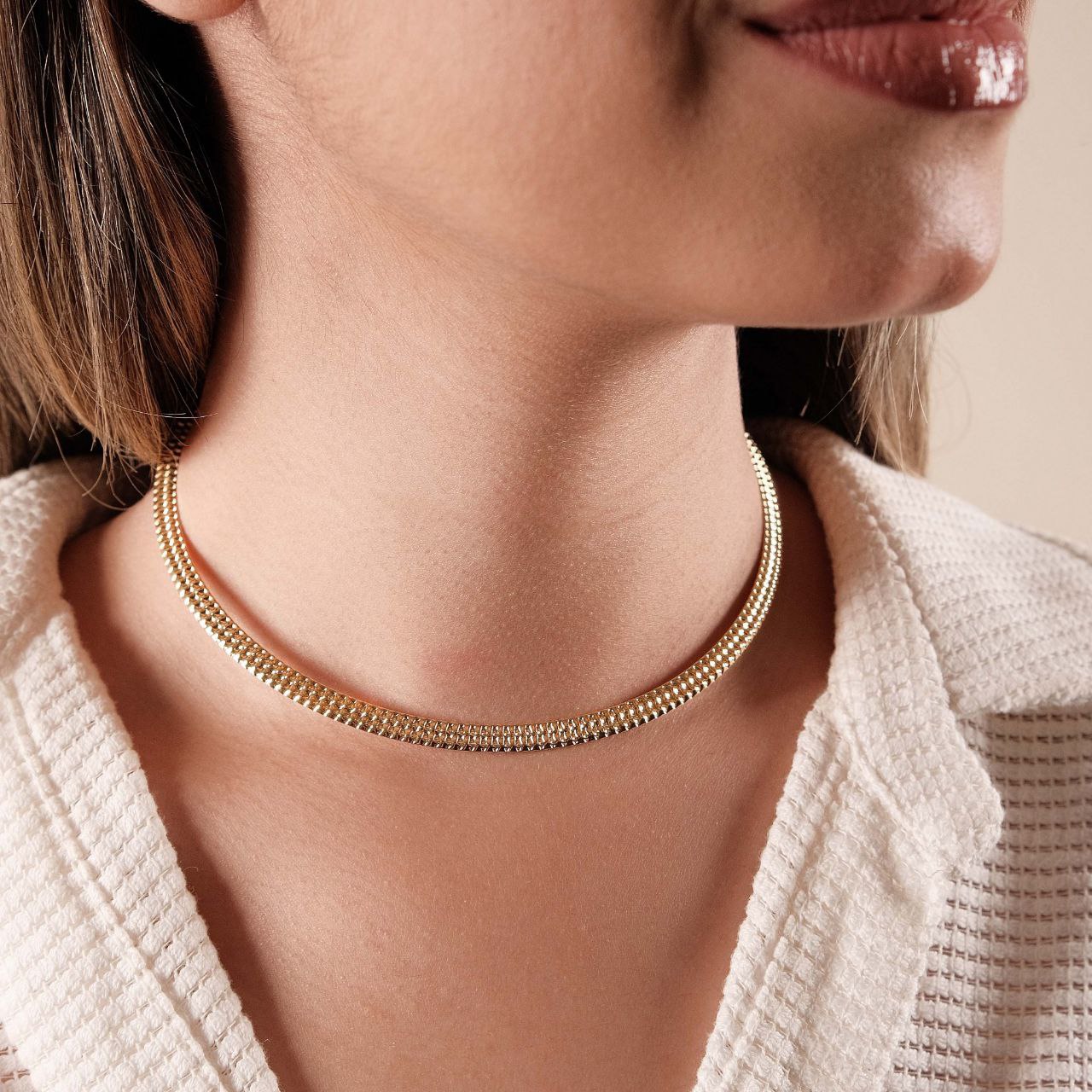Gargantilha Veneziana Flor Orgânica Vazada Banho Dourado